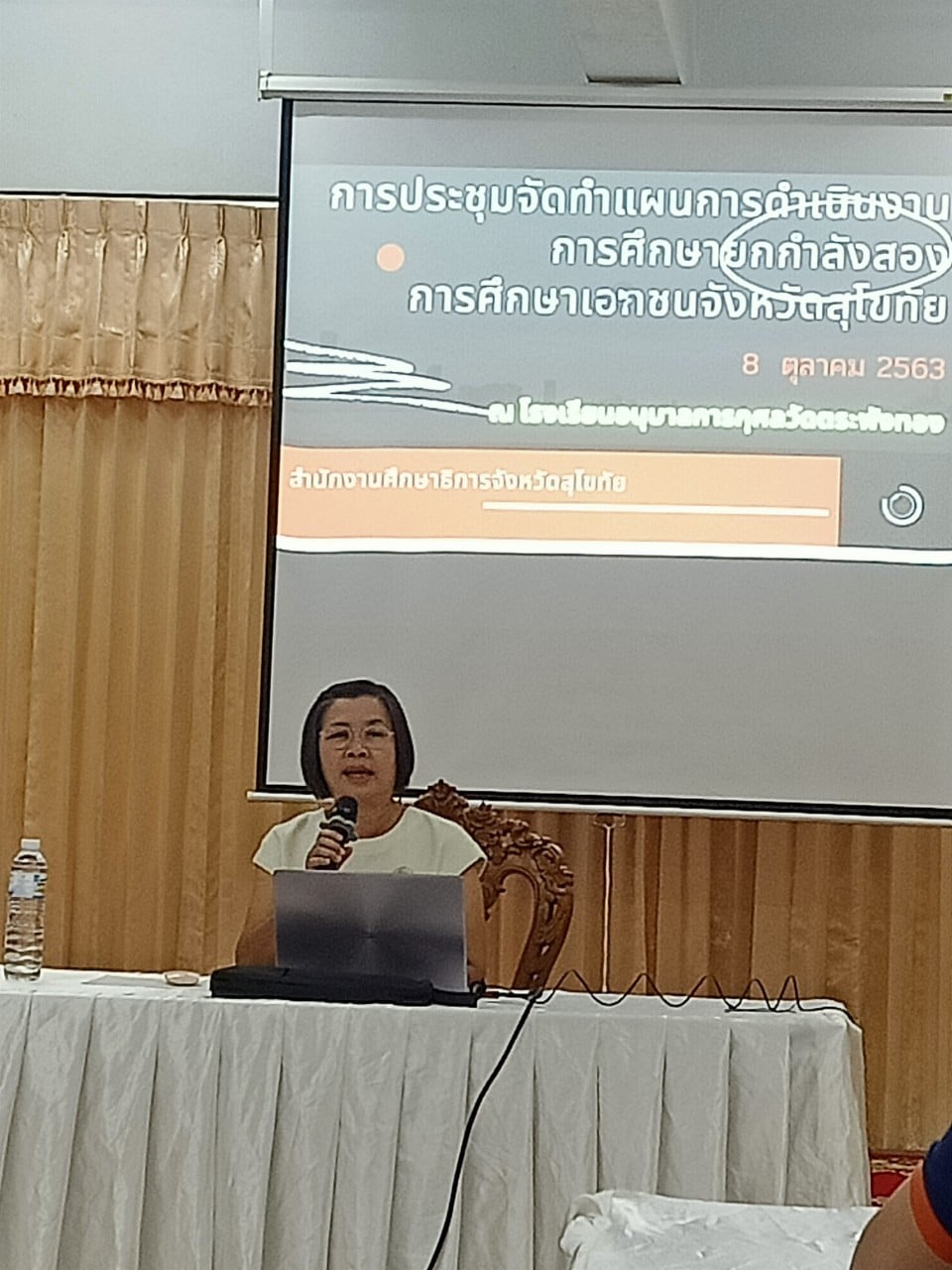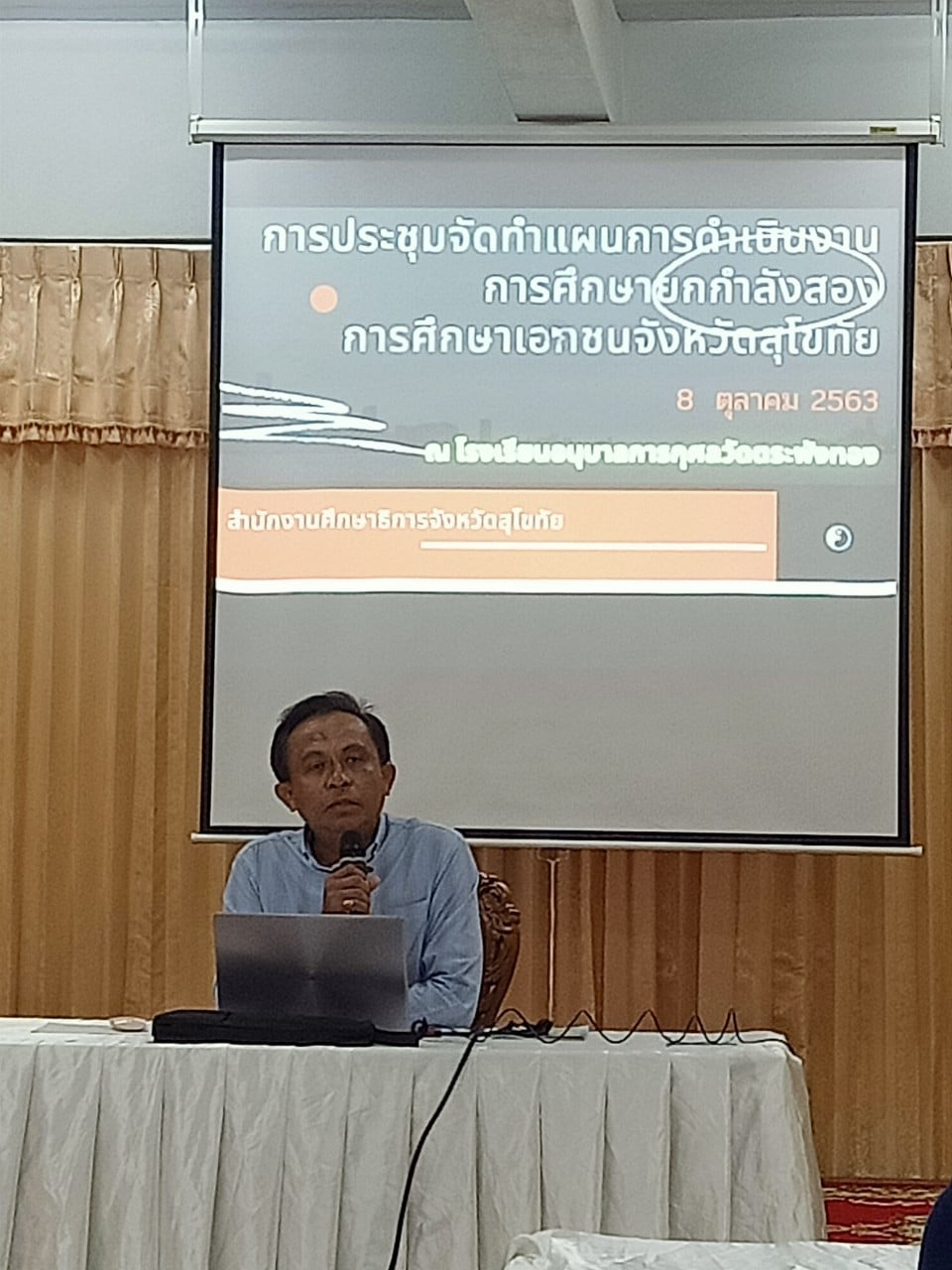 ของการศึกษาตามนโยบาย 3 ป (ปลดล็อค ปรับเปลี่ยน เปิดกว้าง) เปลี่ยนระบบการศึกษาไทยอย่างเร็วและแรงเพื่อยกระดับกำลังสอง การศึกษาสู่ความเป็นเลิศ ณ ห้องประชุมโรงเรียนอนุบาลการกุศลวัดตระพังทอง โดยมีทีมศึกษานิเทศก์ ศธจ.สุโขทัย เป็นวิทยากรพี่เลี้ยงในการจัดทำแผน เพื่อร่วมระดมความคิดจัดทำเป็นแผนในภาพรวมของโรงเรียนเอกชนในจังหวัดสุโขทัย